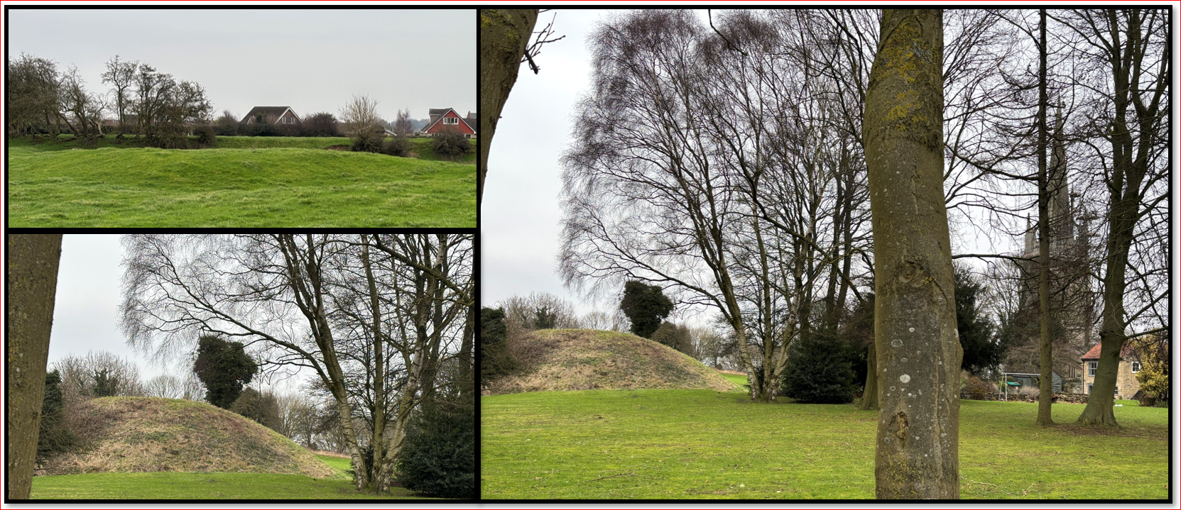 This section of the walk circles behind the Church through an undulating grassy 'meadow' that even to the untrained eye is clearly covering some kind of archaeological remains. These are part of earth works known as Castle Hill. As we returned to a field side track, adjacent to the church we could see the remains of a Motte and Bailey Castle in a mound beside the Church. If you are at all interested in archaeology (I was fortunate enough to take a few electives when studying for my Classics Degree, and I also worked as a volunteer at the Arc in York during my first year at University) then you may find this excavation report from 2019 interesting. We took photographs from the field, but it would be possible to walk through a gate and view them in more detail.