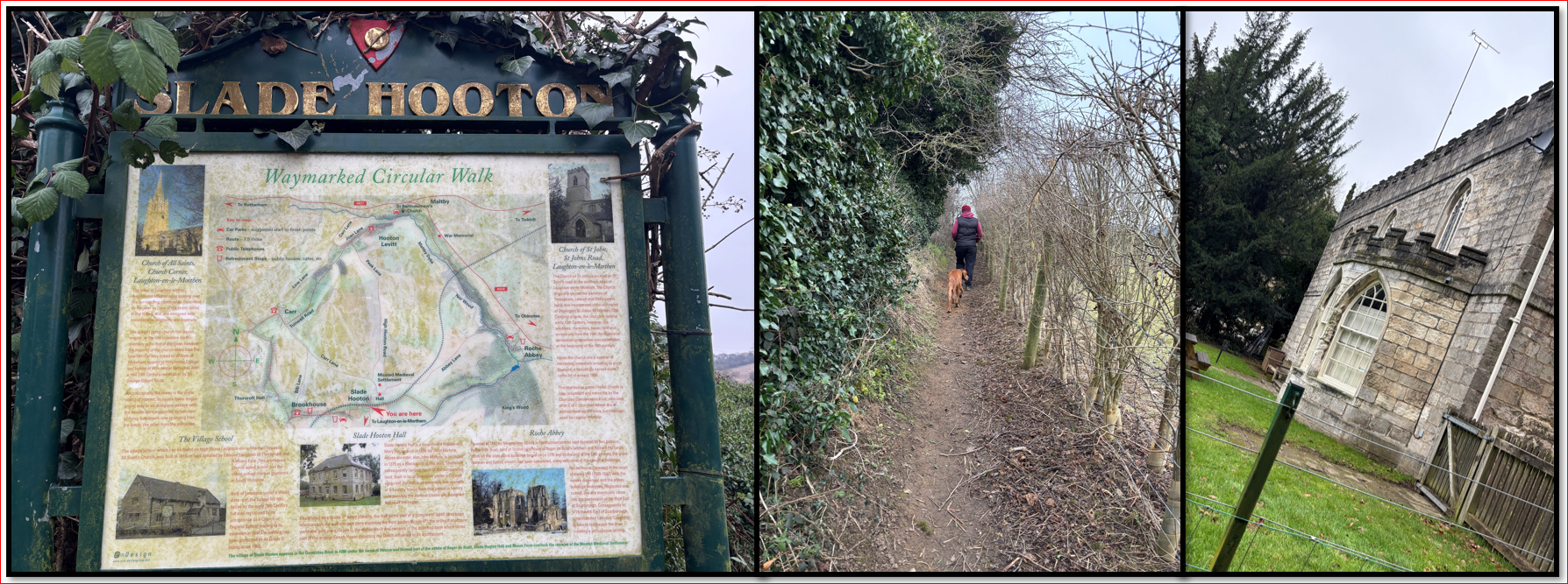 As it reached the railway, it turned right and we followed it over a few stiles. One was a bit tricky for an eleven-year-old Vizsla and so Danny lifted Monty over. The path reached 'Hooton Lane' where we crossed a small road, re-joining the path directly opposite. Here we found another very nice Sign - this time for 'Slade Hooton' - and it had another circular walk route on it!